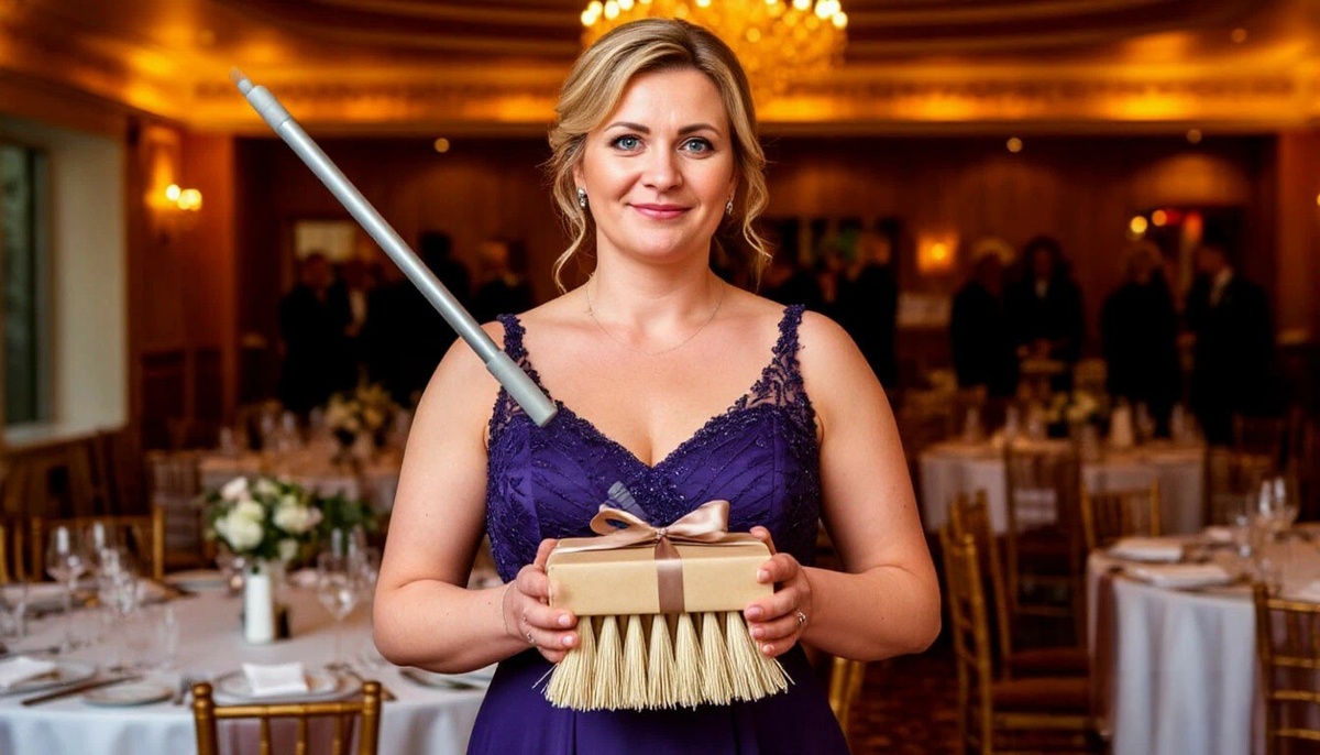 С этими словами он развернул подарок. На полу, среди дорогих ковров и дизайнерской мебели, лежала обычная, дешевая швабра с пластиковым ведром.