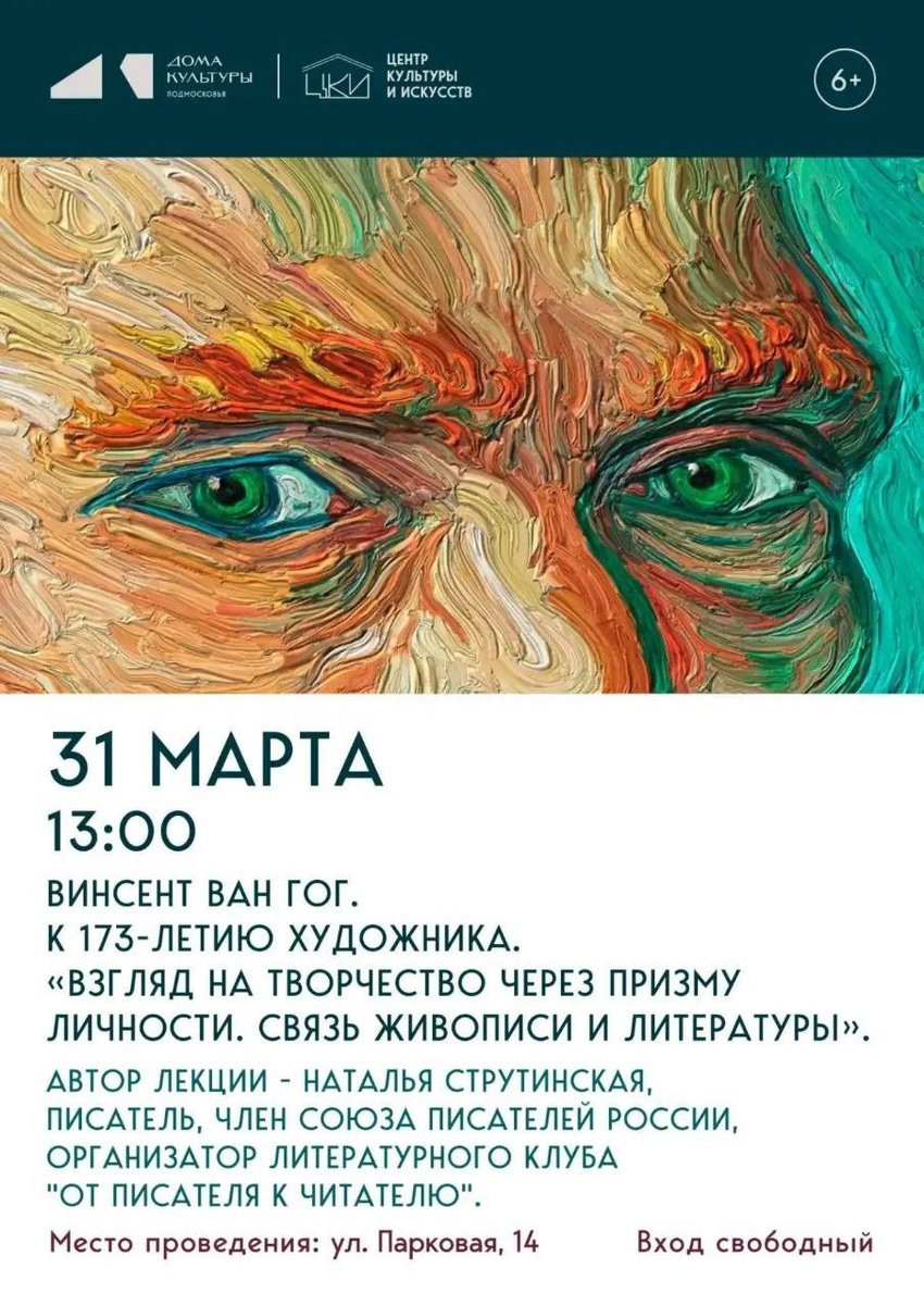 ❗❗️❗ 31 марта в Центре культуры и искусств пройдёт моя лекция, посвященная письмам Ван Гога - и взаимосвязи живописи и литературы. #Ван_Гог Знаю, что некоторые жители города подписаны на мой канал! Приглашаю принять участие! Лекция в будний день, так как на лекцию приглашены студенты и ученики Художественной школы. Большое событие для меня - и знаковое для участников! ✅ Подробная информация - на странице ЦКИ. #события #писатель #литературный_клуб