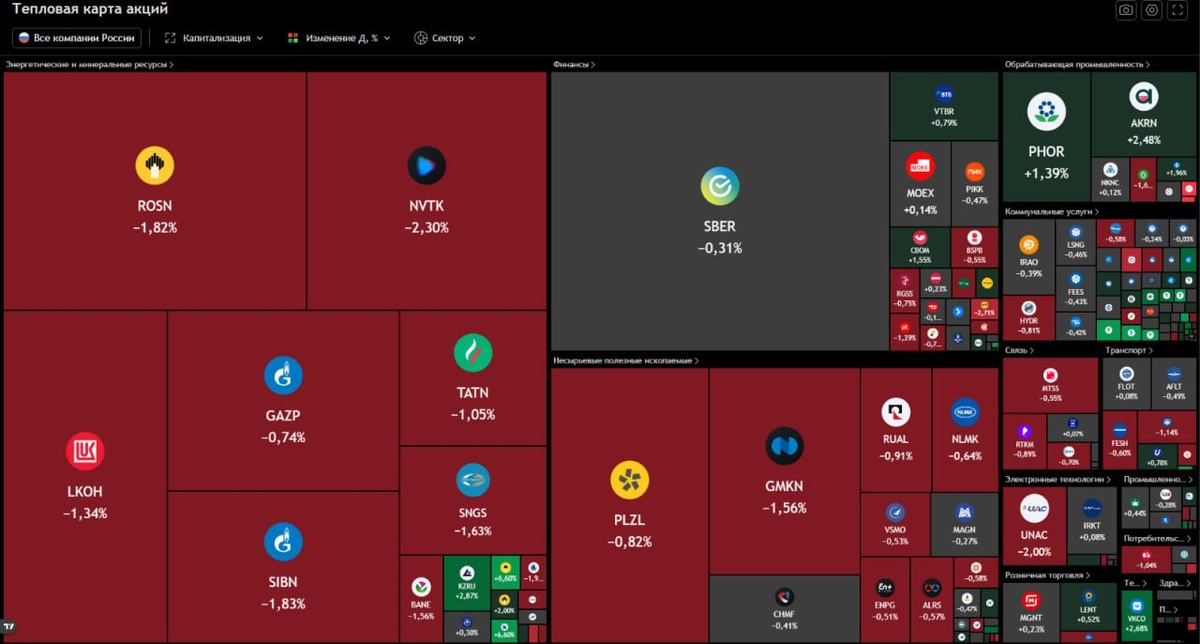 📣 Российский рынок падает с 11 утра, так же как и нефть падает с 11 утра
