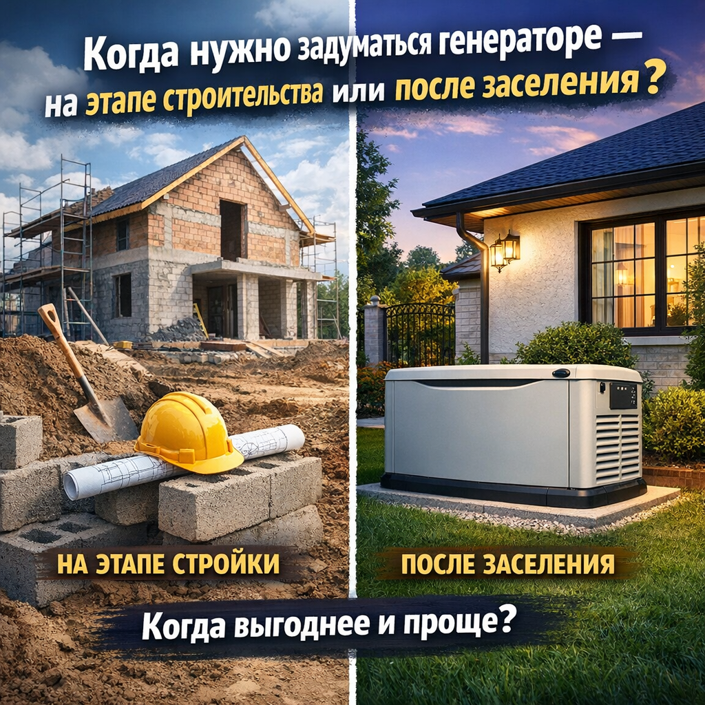 Если дом уже построен — установить генератор тоже возможно. Но такой проект требует более аккуратного проектирования и обычно обходится дороже.