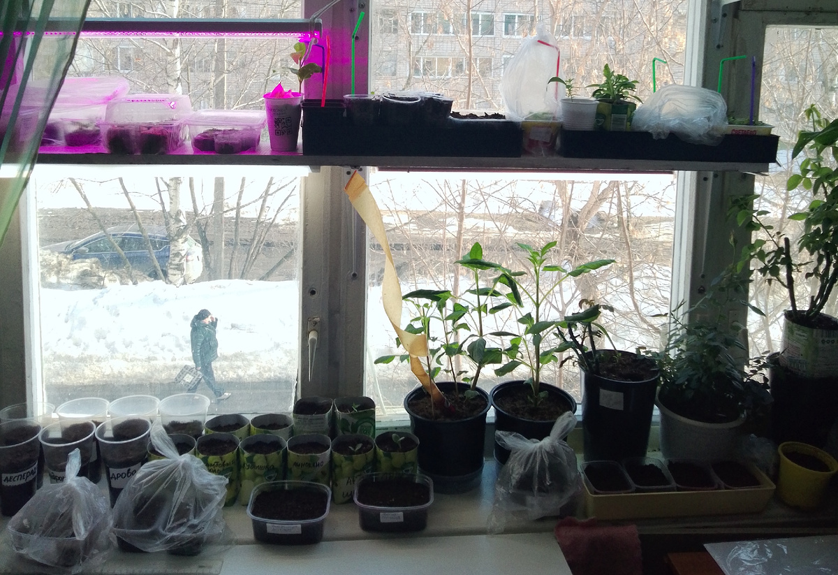 Шли четвертые сутки капели, когда Младшей дамочке стало невтерпёж посеять помидоры, хотя по календарю было ещё рано. Она планировала сеять после 20-го, но когда за окном сияет солнце, которого не видели всю зиму, когда "снеговые горы тают" и "люди головы теряют", тогда рушатся даже самые рациональные планы.
