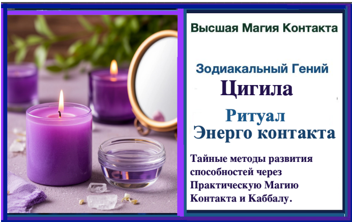 Помните: подобные практики не имеют научного подтверждения и относятся к области верований. Подготовка талисмана Талисман — бусина из фиолетового агата с начертанной акриловым контуром сигиллой (печатью) Зодиакального Гения — должен быть приобретён и подготовлен заранее. Сигилла представляет собой имя Гения в древнем звёздном письме, где каждая линия несёт сакральный смысл и отражает ментальный профиль Зодиакального Гения Цигилы. Условия для ритуала Ритуал Высшей Магии Контакта Необходимые предметы: Пошаговая инструкция: «О, великий Зодиакальный Гений Цигила, хранитель каббалистической мудрости и учитель мистических знаний! Я взываю к тебе с чистым сердцем и открытым разумом. Прими мой знак уважения и позволь обрести твою поддержку и покровительство». «Зодиакальный Гений Цигила, открой мне тайные методы каббалы, позволяющие развить магические способности на всех планах бытия».
