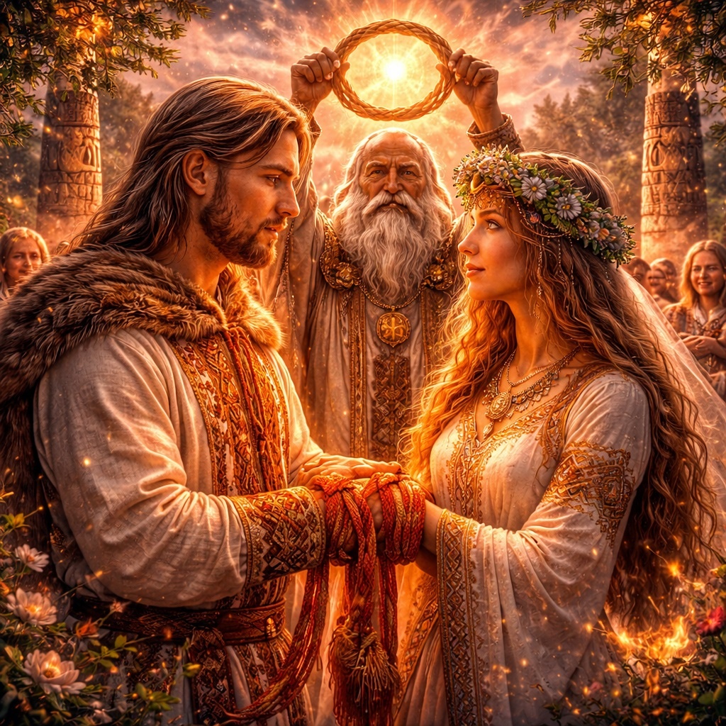 Есть привычная церковная уловка: всё дохристианское представить как хаос, беспорядок и почти животную неоформленность. Но это исторически слишком грубо. У языческих обществ брачный союз тоже был серьёзным, обставленным правилами, знаками, запретами и признанием коллектива. Да, нормы могли отличаться. Да, богословского языка таинства не было. Но священный характер соединения существовал.