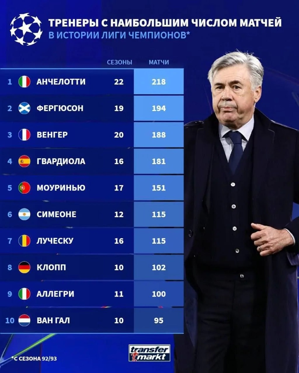 Лидеры по числу проведенных матчей в Лиге Чемпионов 🏆
