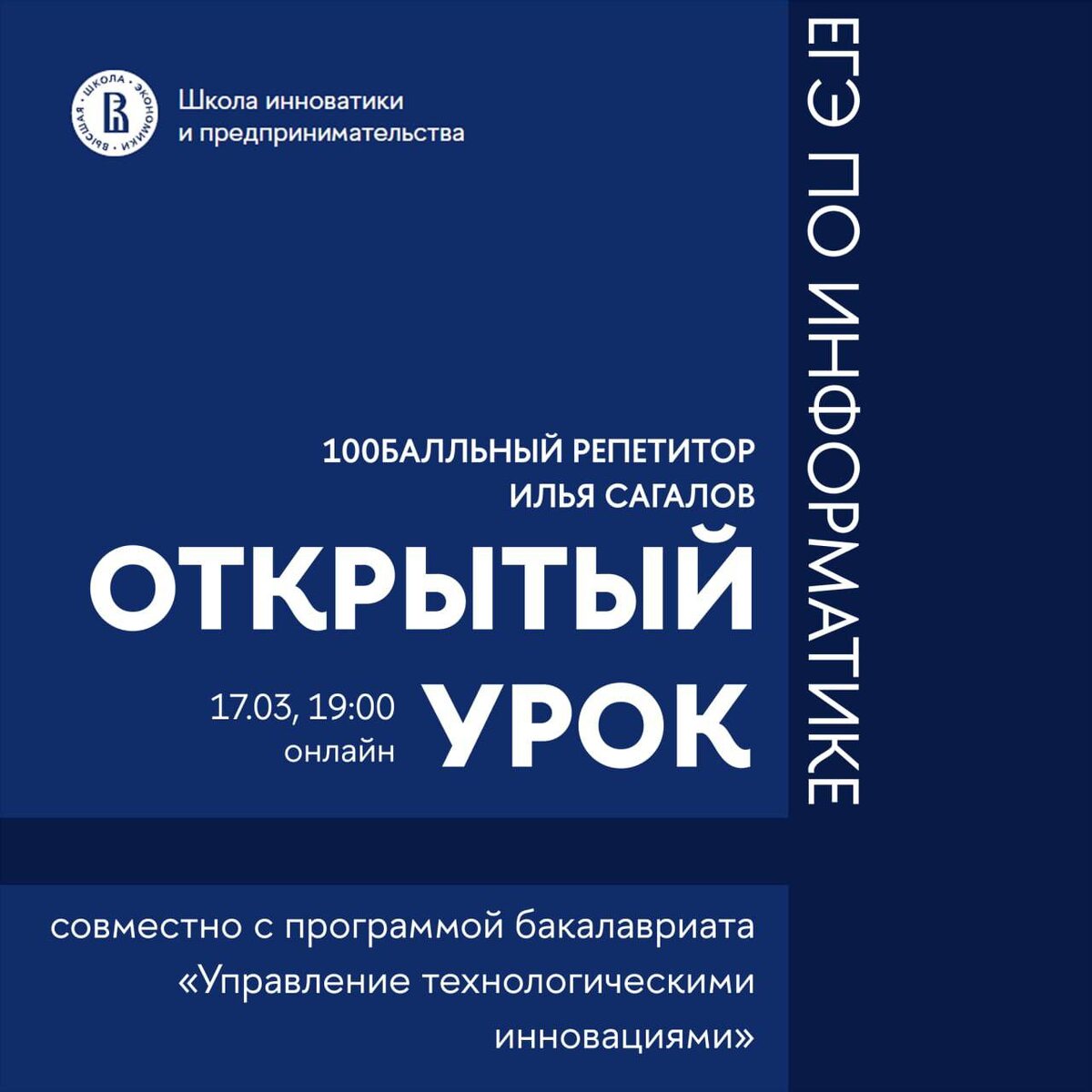 Все мы во что-то играли в детстве, даже не задумываясь о том, что именно это формирует в нас стратегическое мышление. 17 марта в 19:00 в рамках открытого онлайн-урока на примере блока задач на теорию игр поймем, как вырастить в себе стратега и получить благодаря этому баллы на реальном ЕГЭ. Регистрация обязательна 👈 🧑💻 Занятие проведёт Илья Сагалов — преподаватель онлайн-школы «100балльный репетитор»: сдал ЕГЭ на 100 баллов, подготовил более 3000 учеников, а средний результат его выпускников на экзамене — 82+ балла. Открытый урок проходит совместно с программой бакалавриата «Управление технологическими инновациями». 🙋 Это хорошая возможность: — подготовиться к ЕГЭ по информатике с классным преподавателем; — разобрать реальные экзаменационные задания; — узнать больше о программе «Управление технологическими инновациями»; — задать вопросы академическому руководителю. Подключайтесь к открытому занятию, подготовьтесь к экзамену и познакомьтесь с программой! Регистрация по ссылке