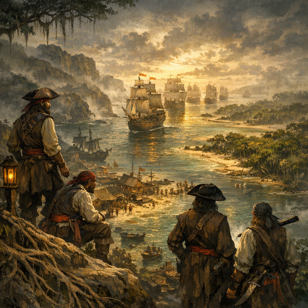 Представьте себе Карибское море середины семнадцатого века. Официально здесь властвует Испания, чьи галеоны, груженные серебром Потоси, медленно и величаво следуют домой через проливы Флориды. Но настоящими хозяевами этих вод являются тени. Они выходят из туманной дымки у скалистых берегов Эспаньолы, скользят по мелководью Багамских отмелей и исчезают в лабиринтах мангровых зарослей. Это не просто преступники. Это архитекторы иного мира. За несколько десятилетий до того, как философы Просвещения напишут трактаты об общественном договоре, и за столетие до того, как Адам Смит опишет «невидимую руку» рынка, сообщества изгоев вроде Тортуги, Порт-Ройяла и Нассау уже воплотили эти идеи в жизнь. Их история — не романтическая сага, а суровая летопись экономической необходимости, породившей самые демократические институты своей эпохи.