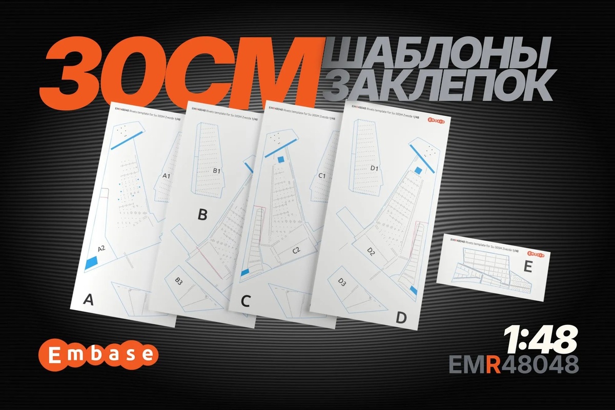 Embase из Твери выпустила трафареты для нанесения заклепок на кили модели Су-30СМ в масштабе 1/48 от "Звезды".