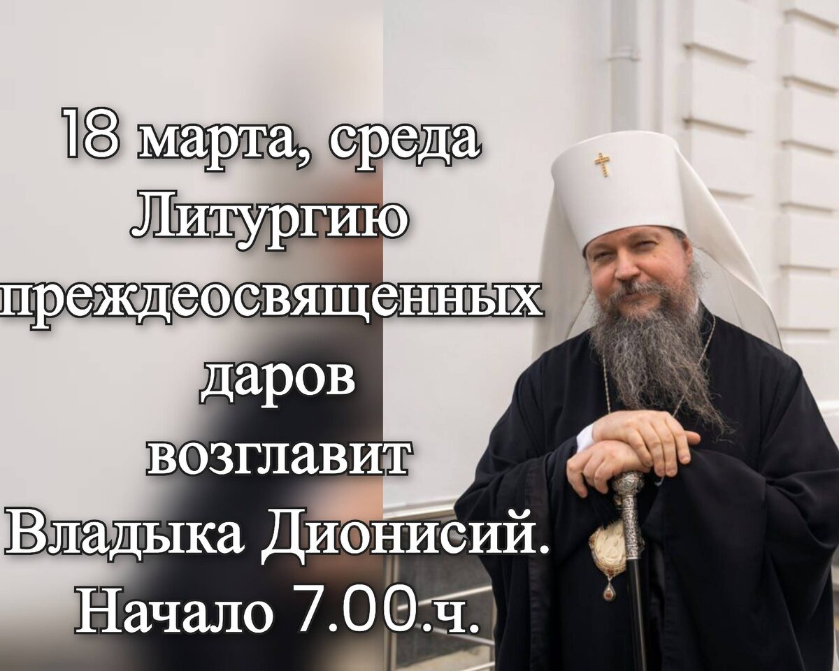 Приглашение на Литургию преждеосвященных даров, которую возглавит митрополит Омский и Прииртышский Дионисий в Воскресенском соборе. Начало: 18 марта 2026 07:00 Стоимость: Не указана Адрес: г Омск, ул Партизанская, д 16 Организатор: https://vk.com/public67446549 Дорогие братья и сестры! В грядущую среду, 18 марта, Литургию преждеосвященных даров в Воскресенском соборе возглавит митрополит Омский и Прииртышский Дионисий. Приглашаем на Богослужение и совместную молитву с Владыкой. Начало Литургии в 7.00. #религия_православие Узнать подробности, адрес или записаться на событие.