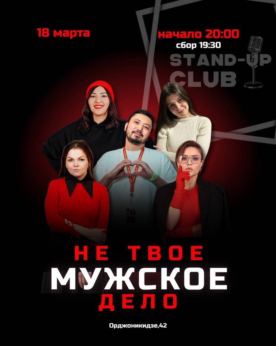 Разговорное шоу, в котором женщины с помощью мужчины разбирают мужские проблемы. Начало: 18 марта 2026 20:00 Стоимость: Бесплатно, Донат Адрес: г Омск, ул Орджоникидзе, д 42 Организатор: https://vk.com/public37259396 📆 18 марта Шоу «Не твоё мужское дело» 👉Разговорное шоу, в котором женщины с помощью мужчины разбирают мужские проблемы 🕗Начало 20:00 🕢Сбор 19:30 🎫Вход любая купюра 📍Бронь мест http://vk.me/standup_omsk 🏠STAND UP CLUB | Орджоникидзе, 42 #развлечения_stand_up Узнать подробности, адрес или записаться на событие.