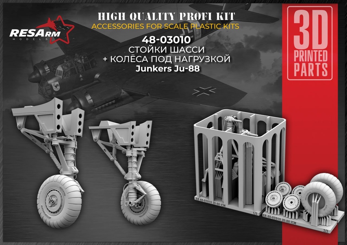 RESArm выпустили стойки шасси + колёса под нагрузкой для модели самолета Ju-88 в 1/48 масштабе