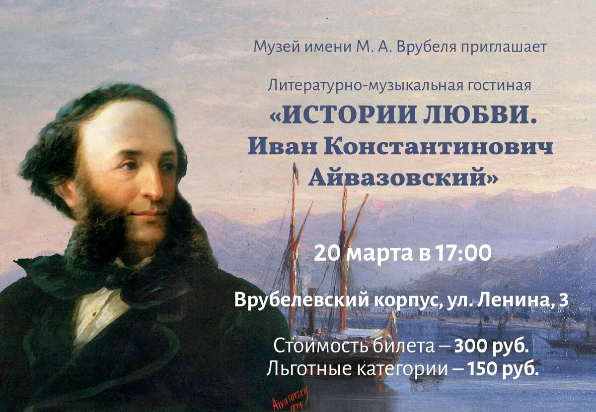 Мероприятие литературная гостиная История любви в музее. Стоимость билетов для членов ВОС и обычный билет. Количество мест ограничено. Начало: 20 марта 2026 17:00 Стоимость: 150.0 руб. Адрес: г Омск, Ленина, 3 Организатор: https://vk.com/public53704496 20 марта, в 17:00 в музее им. Врубеля состоится мероприятие литературная гостиная "История любви". Стоимость билетов для членов ВОС - 150 рублей, обычный билет - 300 рублей. Для записи звоните по телефону: 68-19-78 Количество мест ограничено. Заявки принимаются до 19 марта. Адрес: ул. Ленина,3 #искусство_и_дизайн_литература Узнать подробности, адрес или записаться на событие.