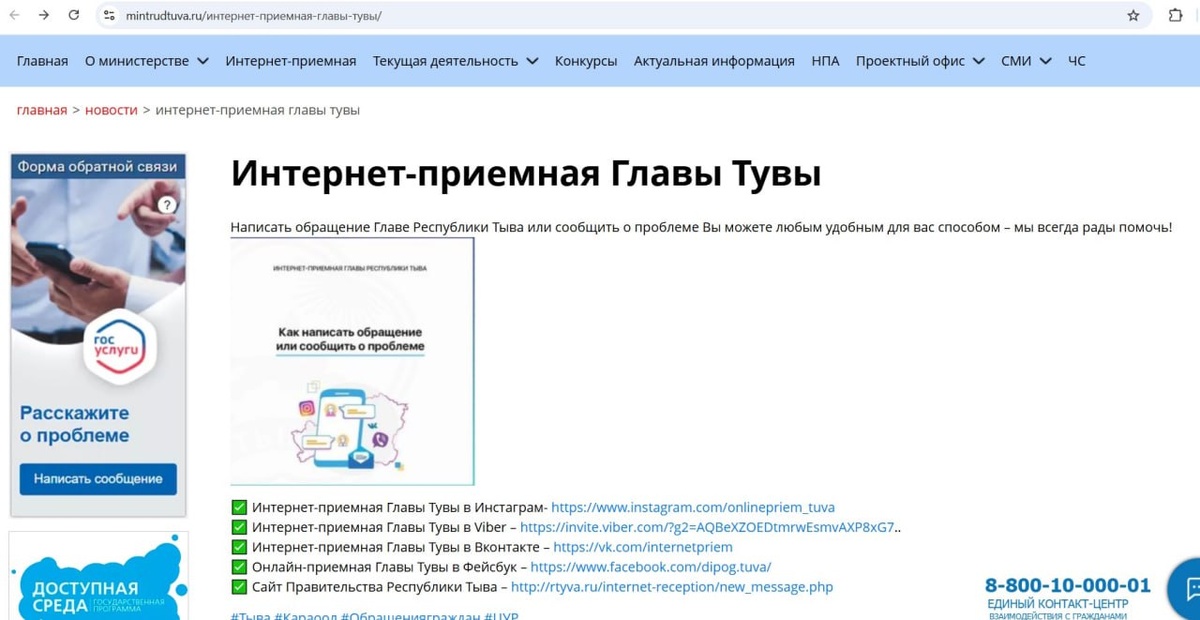 В разделе «Интернет-приёмная Главы Тувы» на сайте Министерства труда и социальной политики Республики Тыва до сих пор размещены ссылки на давно запрещённые в России социальные сети. Вместе с ссылкой на сайт правительства Республики Тыва и сообщество в VK там фигурируют ссылки на группы в Facebook и Instagram. Оба ресурса принадлежат экстремистской организации Meta, деятельность которой запретили на территории РФ ещё в марте 2022 года. 📸 Скриншот с сайта Министерства труда и социальной политики Республики Тыва RuHard в MAX | RuHard в VK | RuHard в Дзен | Максим Горшенин в VK