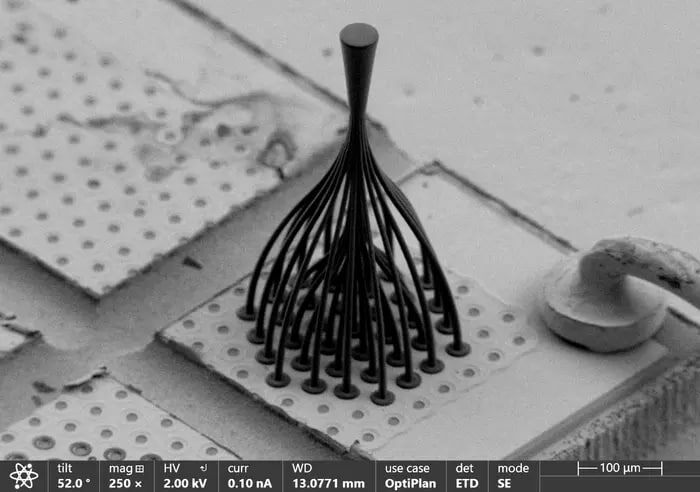 Израильские учёные нашли элегантный выход. Они напечатали на 3D-принтере микроскопический оптический переходник — фотонный фонарь. Он собирает излучение от массива полупроводниковых лазеров и плавно «вливает» его в одно стандартное оптоволокно. Без потери яркости.
