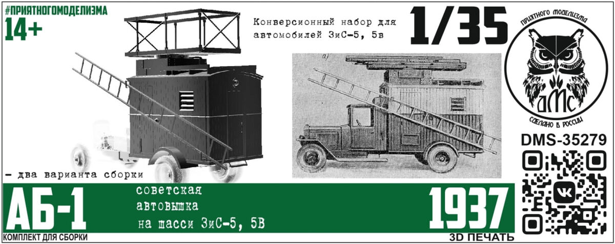 ДМС (denisssmodels) выпустили в продажу конверсионный набор АБ-1 для моделей ЗиС-5 в 1/35 масштабе.