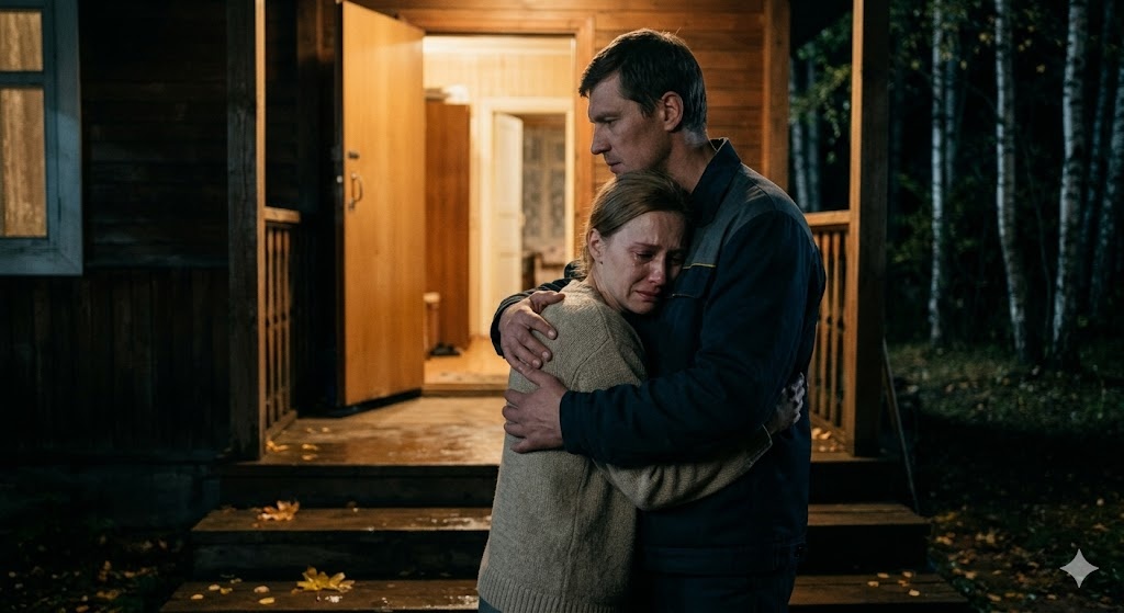 Он подошел к крыльцу, молча поднялся по ступенькам и осторожно, но уверенно обнял Аню, прижимая ее к своей груди.