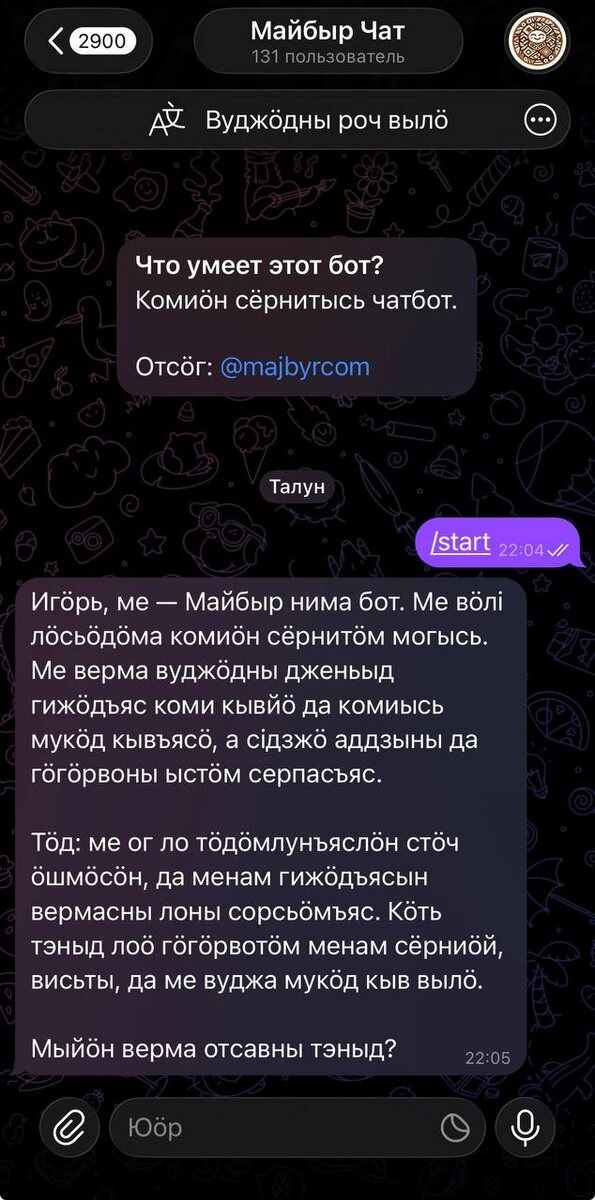 Ӧльӧксей Иванов создал @majbyrchatbot