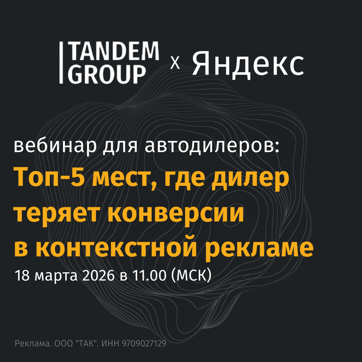 На вебинаре 18 марта в 11:00 с экспертами Яндекса «разложим по полочкам», где именно в контекстной рекламе дилеры чаще всего теряют конверсии и как это поправить. За время эфира обсудим: Если вы отвечаете за лиды, заявки и продажи в авто – подключайтесь за рабочими идеями, как увеличить конверсию. 👉 Участие бесплатное. Регистрируйтесь по ссылке, чтобы получить доступ к эфиру и записи – https://golnk.ru/vXdbN erid: 2SDnjeA3uWh