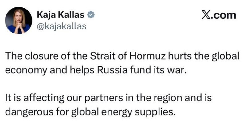 Հորմուզի նեղուցի փակումը վնաս կհասցնի համաշխարհային տնտեսությանը և կօգնի ՌԴ-ին ֆինանսավորել պատերազմը, հայտարարել է Եվրոպական դիվանագիտության ղեկավար Կայա Կալասը