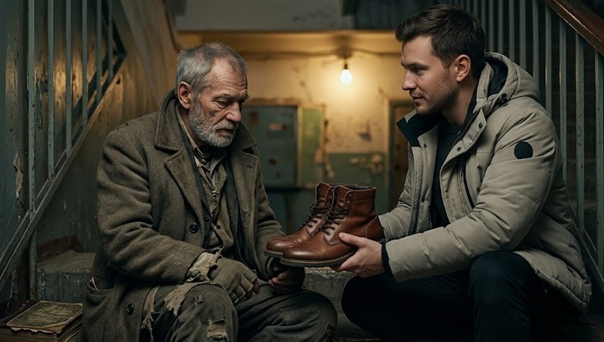 Мужчина медленно поднял голову. Он не схватил обувь с жадностью, как я ожидала. Он посмотрел на ботинки, потом на Пашку, и в этом взгляде не было ни капли той униженной покорности, которую обычно приписывают бродягам.