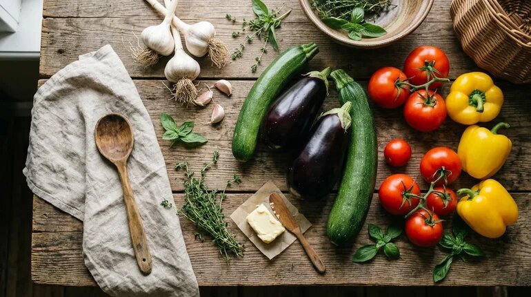 Рататуй классический — это не просто овощное рагу, а настоящий символ щедрого лета и уютных семейных ужинов. Когда на грядках поспевают кабачки, баклажаны и перцы, самое время собрать этот урожайный букет в одном блюде. Мы привыкли считать рататуй французским изобретением, но его ароматная суть удивительно близка русской душе: сытно, наваристо и без лишних заморочек. Представляю вам рецепт, который соединит провансальский шарм и наши дачные традиции — с легким секретным ингредиентом, который сделает вкус незабываемым.