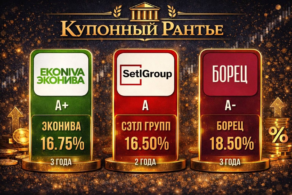 : 📌ЭкоНива-001P-01 ISIN RU000A10EJZ8 - Порядка 80 млрд руб. краткосрочного долга, который придется выплачивать или рефинансировать до конца года. - Купон с 18% снижен 16,75%, что фактически убирает какую-либо премию на этот выпуск. Интересен ли он сейчас? Сомневаюсь. На рынке есть аналоги с аналогичным рейтингом и доходностью выше. Но в качестве эмитента для разбавления портфеля, имеет право на жизнь. 📌СэтлГр-002Р-07 ISIN RU000A10EK06 Вполне достойный вариант, но на фоне сегодняшних же конкурентов выглядит слабее по сроку и доходности. Брать не первичке смысла не вижу, Разбор эмитента планирую на завтра. 📌БорецК-001Р-05 ISIN RU000A10EK71 👉 Обзор на финансовое состояние эмитента и сам выпуск выложен тут