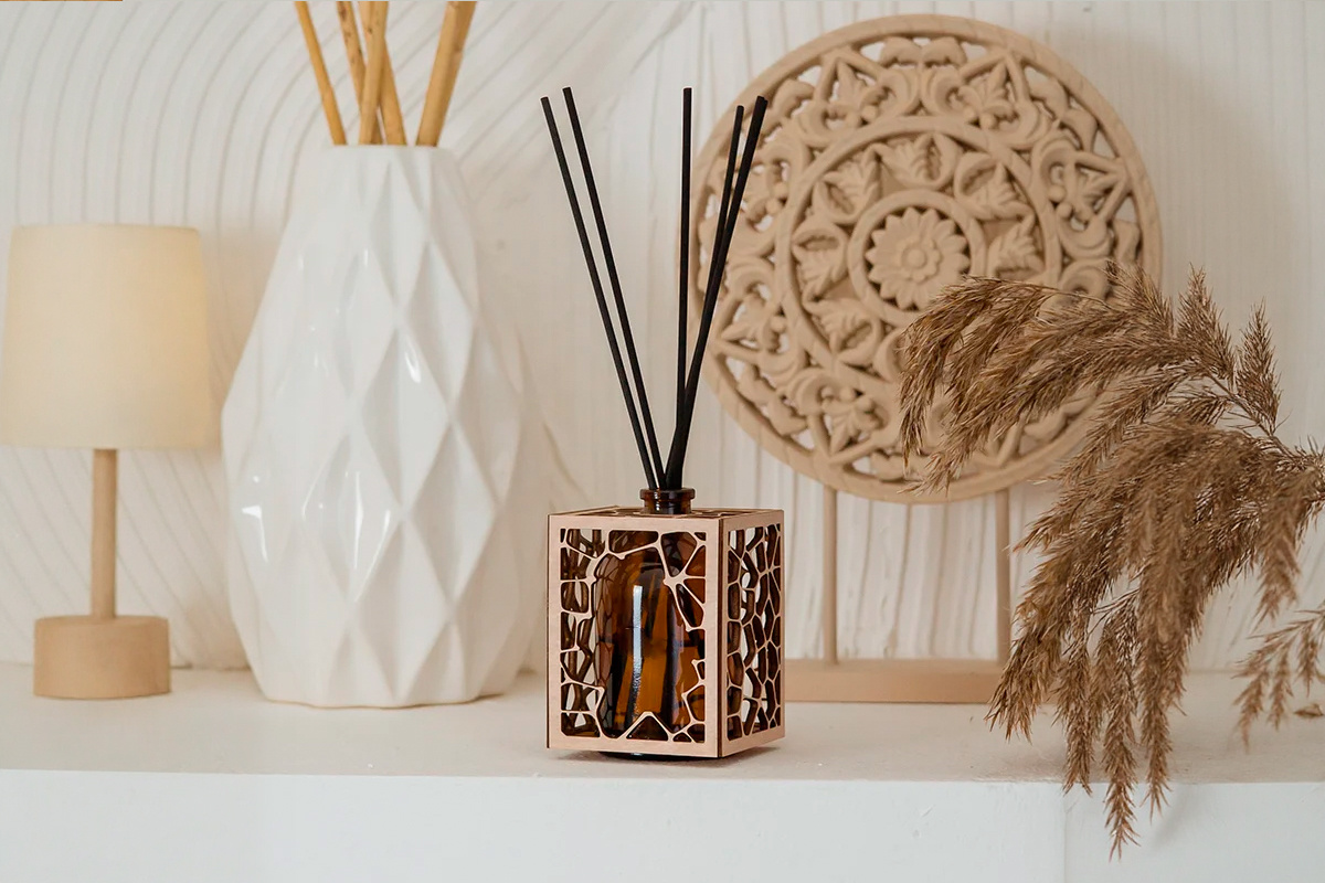 - Поиграйте с расположением. Если аромат кажется слишком сильным у изголовья кровати, попробуйте переставить диффузор на другую сторону комнаты или убрать одну палочку.