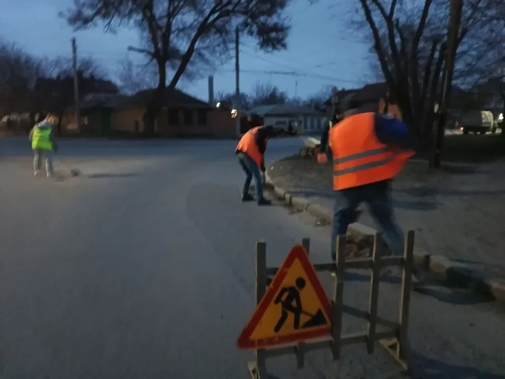 На восьми улицах Таганрога полным ходом идет очистка бордюров от грязи