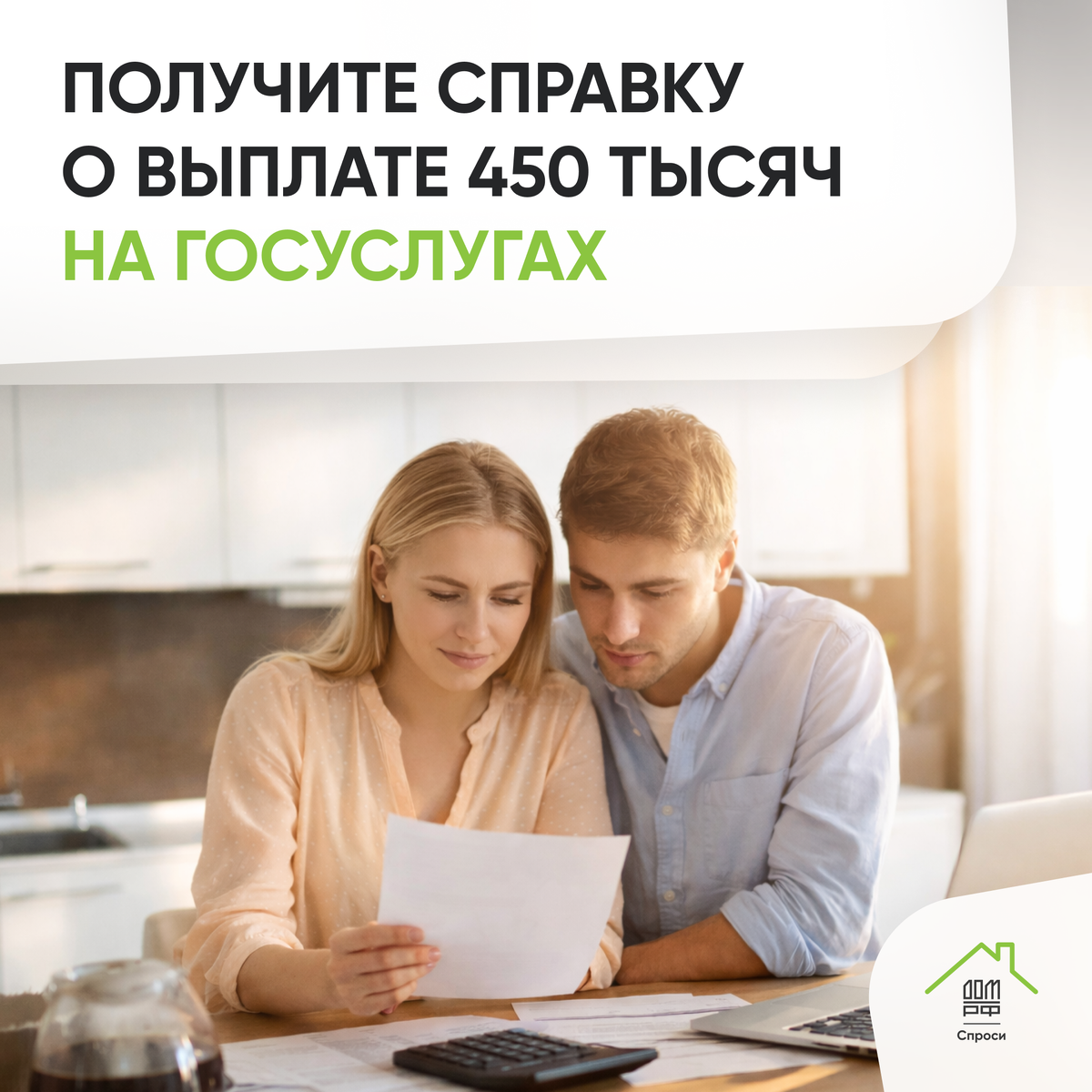 Справку об использовании выплаты 450 тысяч теперь можно получить на Госуслугах 📲