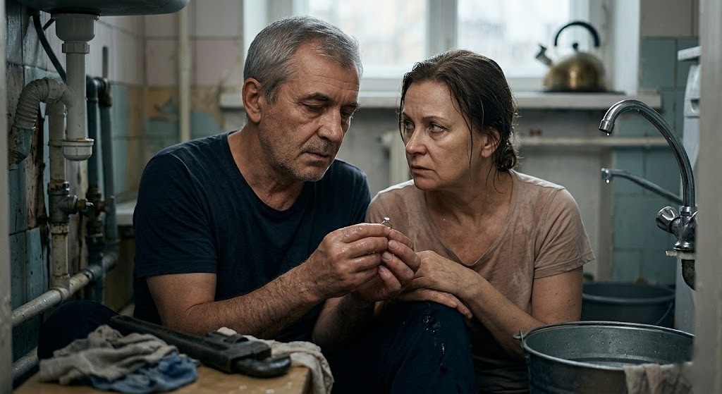 Елена Петровна залезла под раковину рядом с мужем. Там было тесно, пахло сыростью и старыми трубами. Она схватилась за ключ. Андрей навалился на вентиль газовым ключом.