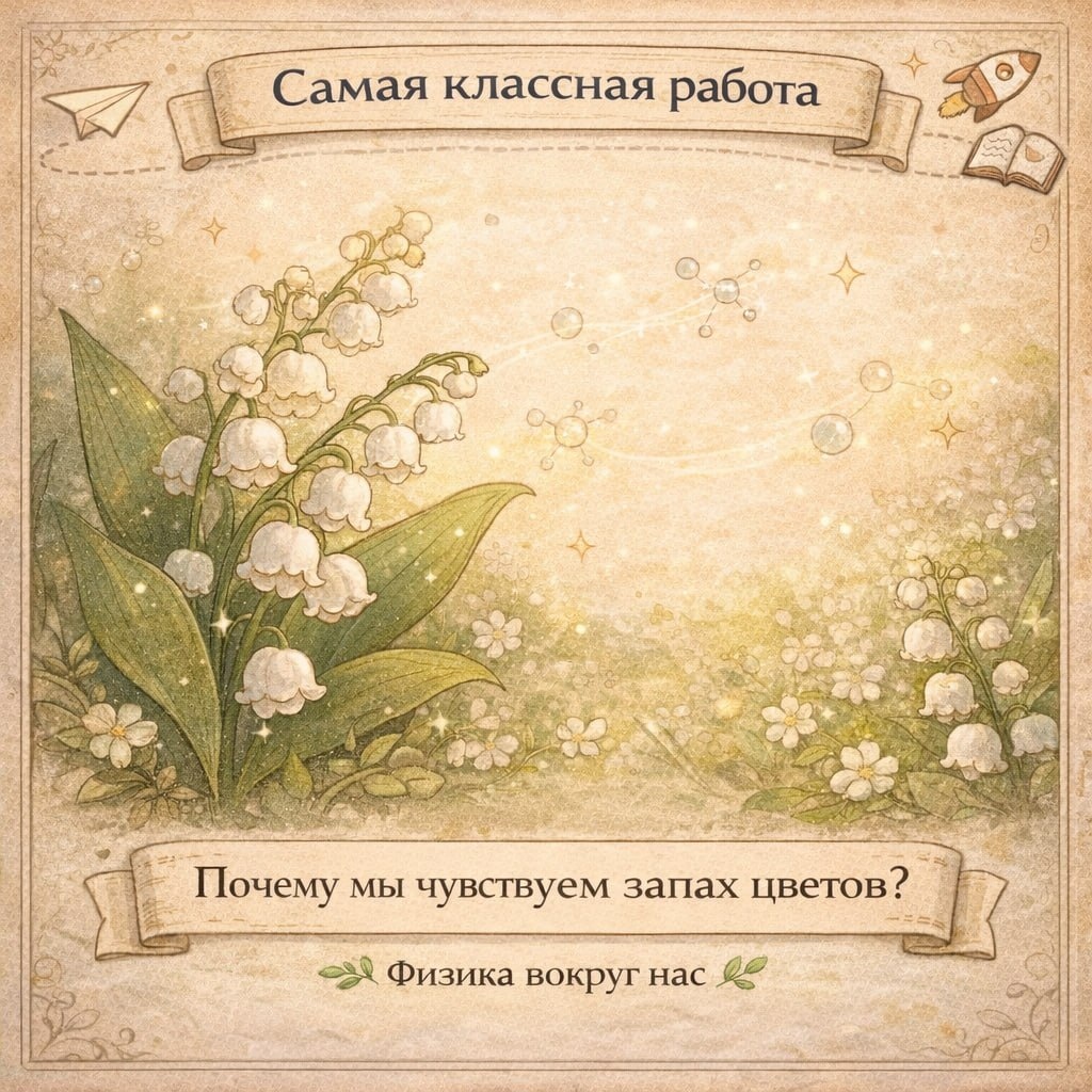 ? #физика_вокруг_нас Весной начинают цвести деревья, появляются ландыши, тюльпаны, сирень, черёмуха... И иногда запах цветов можно почувствовать за несколько метров, а то и дальше. Но как аромат вообще «доходит» до нашего носа? Ответ - диффузия. Цветы выделяют в воздух молекулы ароматических веществ. Эти молекулы постоянно движутся и постепенно распространяются среди молекул воздуха. Из-за хаотичного теплового движения они перемешиваются, и аромат расползается во все стороны. Чем теплее на улице, тем быстрее движутся молекулы, поэтому в тёплый весенний день запах цветов ощущается сильнее. А ветер может разносить эти молекулы ещё дальше. Получается, что каждый раз, когда вы чувствуете запах цветов, это работает самая обычная физика. 💬 А вы замечали, какие цветы пахнут сильнее всего? Сирень, тюльпаны, черёмуха… или, может быть, что-то другое? 💻 Самая классная работа