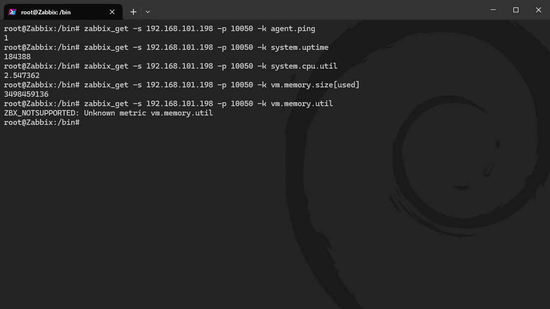 Многие администраторы воспринимают Zabbix как некоторую цельную и закрытую систему, все данные в которой собираются сервером Zabbix и концентрируются в одном месте. Однако это не так, Zabbix достаточно открытая и универсальная система, которая может предоставлять различные сценарии использования. Так для получения данных от агентов вам не обязательно нужен сервер или прокси, вы можете использовать для этого отдельную утилиту командной строки - Zabbix get. Вы можете установить ее как на хост с Zabbix, так и на любую иную систему, для которой есть соответствующие пакеты. Для этого нужно подключить репозитории Zabbix и выполнить команду (для DEB-систем): apt install zabbix-get Если данный узел не является сервером Zabbix, то нужно добавить его адрес в опцию Server агента, в противном случае вы получите ошибку: Check access restrictions in Zabbix agent configuration После чего можете начать общаться со своим агентом при помощи командной строки, общий синтаксис такой: zabbix_get -s h