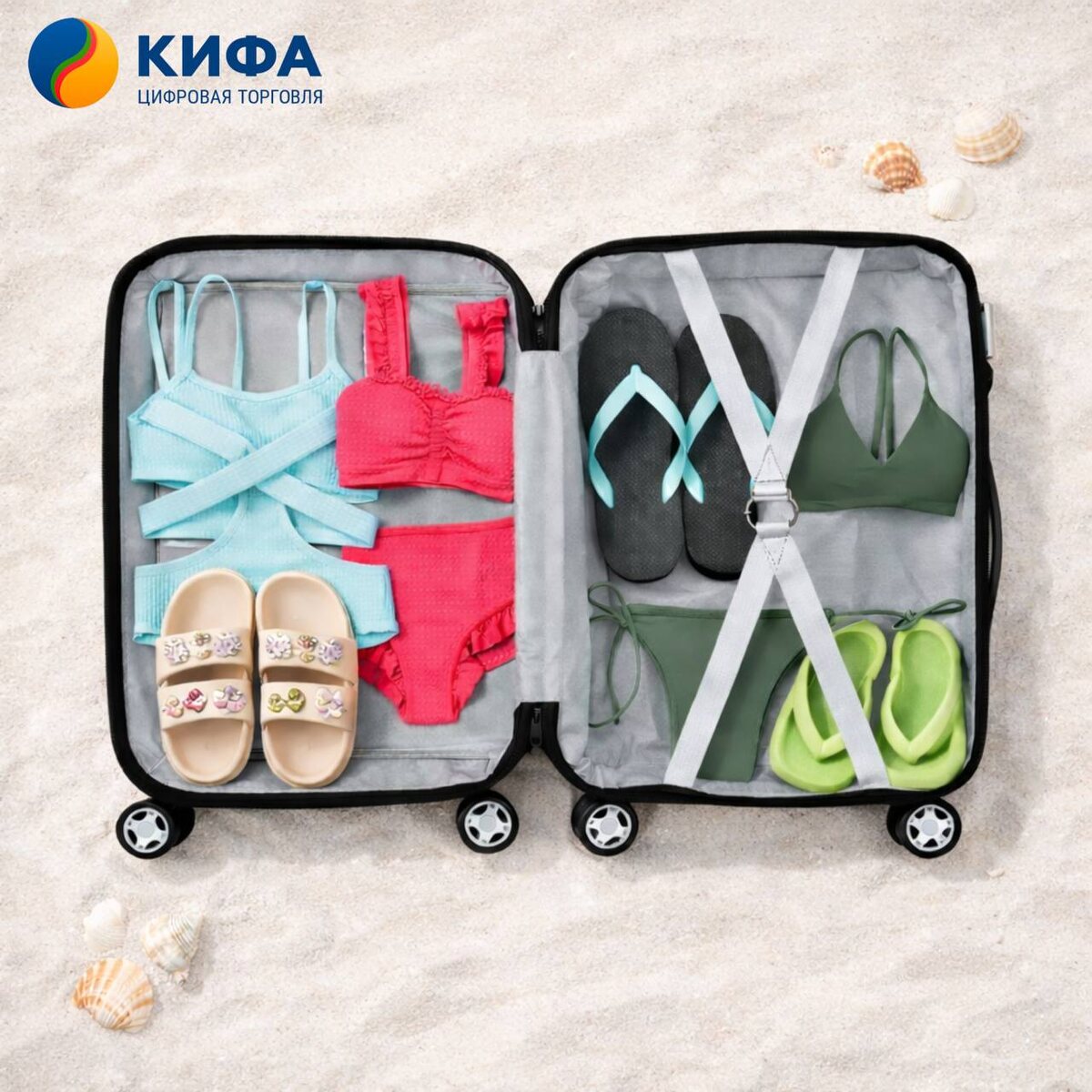 ! Слышите этот звук? Это шум прибоя намекает, что пора заказывать товары на лето! Главный секрет хорошего отдыха — идеальный купальник и удобные шлепанцы. В новой подборке собрали всё, чтобы ваши покупатели блистали на пляже. Купальники для всей семьи Мы знаем, что у каждого клиента свои предпочтения, поэтому подготовили разный ассортимент: 🟠Взрослые и детские 🟠Слитные и раздельные 🟠Закрытые и открытые 🟠Для любого типа фигуры: с юбками, шортами и штанами 👉 Смотреть подборку Легкая обувь на лето: шлепанцы и сабо Ни один отпуск не обходится без правильной обуви! На КИФА вы найдете: 🟠Яркие шлепанцы для пляжа 🟠Трендовые сабо для прогулок 🟠Мягкие тапочки на любой случай 👉 Смотреть подборку Листайте каталог и выбирайте лучшее для своих клиентов! ➖➖➖➖ Артикулы товаров на фото: Розовый детский купальник: CC4206_Z13 Голубой слитный купальник: CC3654_T22695 Оливковый раздельный купальник: CC3262_3248 Бежевые сабо с декором: CC4225_A370 Черные классические шлепанцы