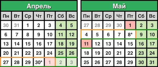 ?! 😳 Наша страна – уникальна. Собственный путь – буквально во всём…особенно – в праздниках 😅 Казалось бы: не успели ещё осесть конфетти новогодних фейерверков, а на носу уже следующие БОЛЬШИЕ КАНИКУЛЫ – Майские праздники. Просто посмотрите на это: Вот, вроде бы, стандартная история…но нет! В этом году – ‘уникальность в квадрате’: 25-26 апреля выпадают на выходные, а на 11’е мая перенесли праздничное 9’е. Восемь выходных и два коротких рабочих дня – это, считай, вторые новогодние каникулы. Догадываетесь, что это всё означает? 😉 Как человек с профессиональной турагентской деформацией, видя восемь выходных…я вижу отличную возможность устроить полноценный отпуск. Смотрите 👇 Берём 3,5 отгула с 27’го по 30’е ▶️ отправляемся в обалденное 9’дневное путешествие (с 25’го апреля по 3’е мая). Или прогуливаем 😅 4,5 рабочих дня с 4’го по 8’е ▶️ получаем классную 11’дневную поездку (с 1’го по 11’е мая). Суперкомбо: отпрашиваемся с работы на 8 дней ▶️ устраиваем себе длиннющий 17’дневный от