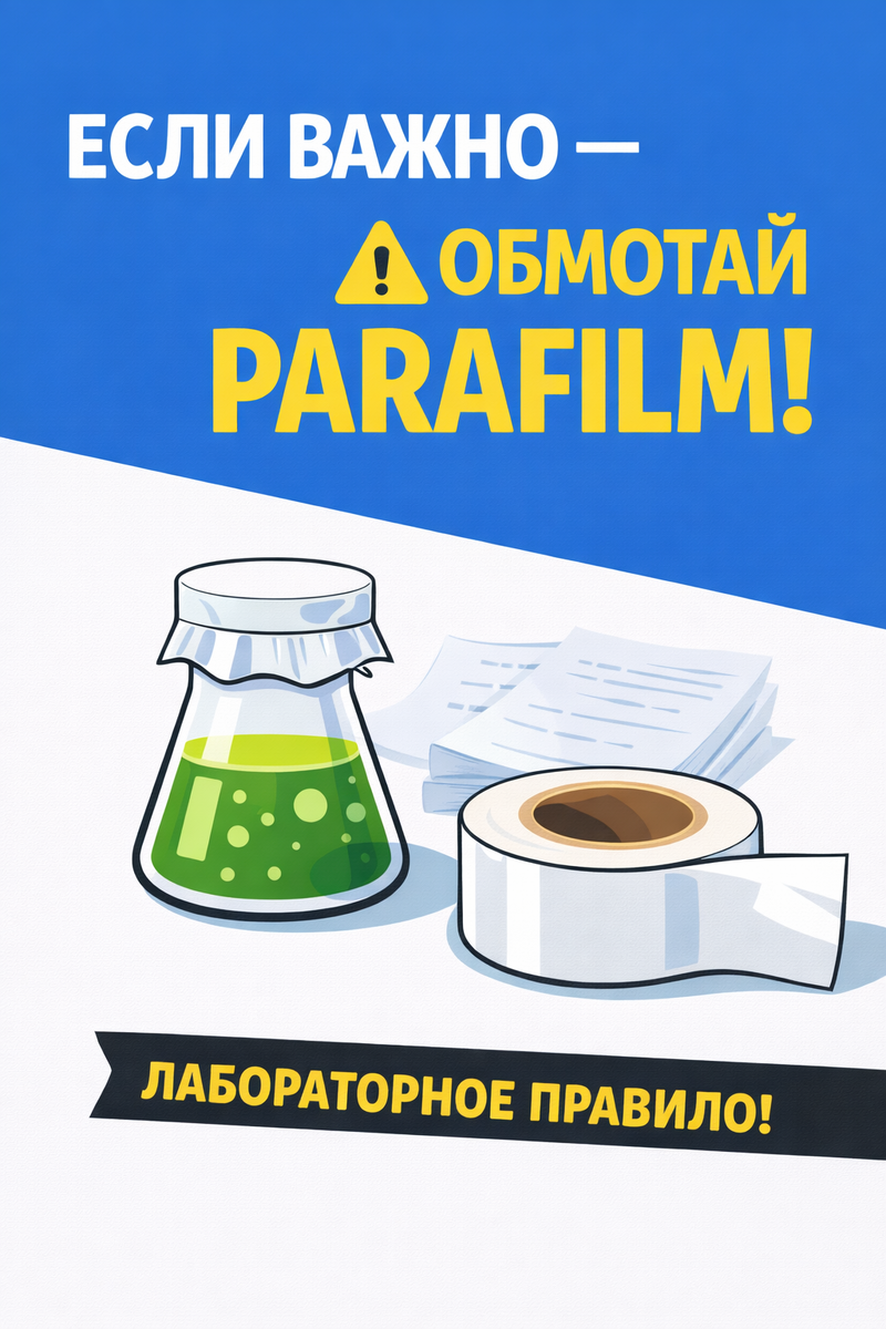 Но если на ней появился Parafilm, значит трогать её нельзя. Почему? Потому что внутри — важный эксперимент. И дело не в самой плёнке.