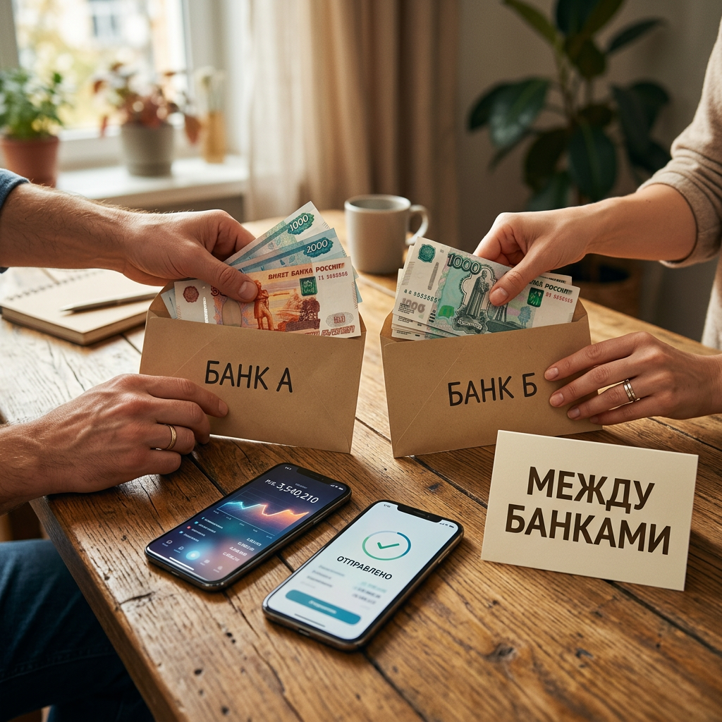 На бумаге перевод самому себе выглядит почти идеальной операцией: комиссия нулевая, кнопка рядом, новый банк обещает ставку выше. Но именно на этом маршруте люди часто теряют не на одном большом штрафе, а на нескольких мелких утечках сразу. Я бы не смотрел на такой переход как на простое движение денег из точки А в точку Б. Это маленькая финансовая логистика: важно не только куда пришли деньги, но и что случилось с ними в пути. Самый частый случай: человек видит красивую витрину в другом банке и уводит деньги за день-два до начисления. В итоге в первом банке теряется последний кусок процентов, а во втором ещё нечего считать победой. Маршрут "из одного банка в другой" сам по себе не гарантирует приветственную ставку или надбавку за новые деньги. Если банк смотрит на историю остатков, на период, на лимит суммы или на статус клиента, витринная выгода может просто не сработать. Даже при нулевой комиссии деньги могут провести несколько дней в слабом режиме: ушли из первого сценария, а во в