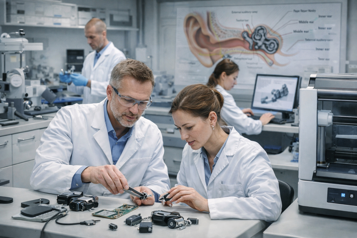 Российские учёные придумали, как сделать слуховые имплантаты заметно точнее. Новая конструкция позволяет снизить искажения звука примерно на 17%, благодаря чему речь и окружающие шумы становятся гораздо разборчивее. Разработку представили специалисты Пермского национального исследовательского политехнического университета (ПНИПУ) вместе с коллегами из Пермского государственного медицинского университета имени академика Е. А. Вагнера (ПГМУ) и Российского университета медицины. Речь идёт о так называемых аппаратах костного звукопроведения. В отличие от обычных слуховых аппаратов, они передают звук через кости черепа прямо во внутреннее ухо, минуя повреждённые части слуховой системы. Такие устройства используют люди с врождёнными аномалиями уха, последствиями травм или заболеваниями среднего уха. Главная проблема подобных имплантатов — потери искажения сигнала. Стандартные металлические крепления не всегда обеспечивают плотный контакт между элементами устройства, поэтому часть вибраций пр