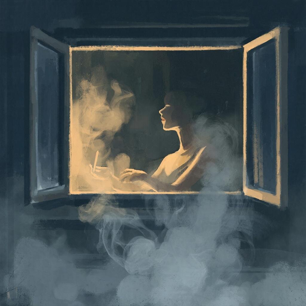 1. Творчество как наркотик — сигаретный дым становится метафорой самого процесса: вдыхание, задержка, выдох, новый вдох