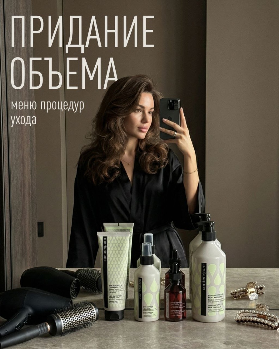 Barex Contempora Volume — это линия для объема волос, где каждый этап усиливает следующий, создавая живую, подвижную форму без компромиссов. В основе этой системы лежат два исключительных ингредиента, работающих в идеальном балансе: · Масло облепихи: укрепляет волокно изнутри, возвращая волосам их природную силу и глубокое сияние. · Огуречное масло: глубоко увлажняет, сохраняя текстуру воздушной и свободной. От деликатного очищения до работы с прикорневой зоной — вы выстраиваете объем, который выглядит естественно и безупречно держит форму в течение всего дня.