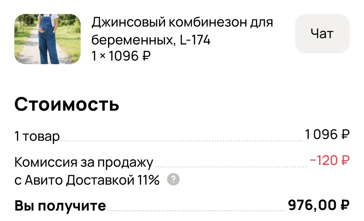 1. На Авито продался комбинезон для беременных. Он лежал у меня 🙈🤫 подожди-подожди... 18 лет 🙃 и я его ни разу не носила. Получила его в магазине в подарок при покупке другой одежды для беременных ещё когда старшей была беременна. Но тогда уже была зима и ходить с ним было тяжело (всё же эти заклёпки и сама джинса тяжеловаты). В теплый период ещё норм, а когда и живот большой, и ещё одежда тяжёлая, то не хочется носить. С младшей я про него забыла и он пролежал много лет с бирками в шкафу. Потом были мысли выложить его на Авито, но тоже этот период был перед зимой. Хорошо, что расхламление весной затеяла. Сейчас он актуален будет и носить его будет не так тяжело. Он принес 976 руб