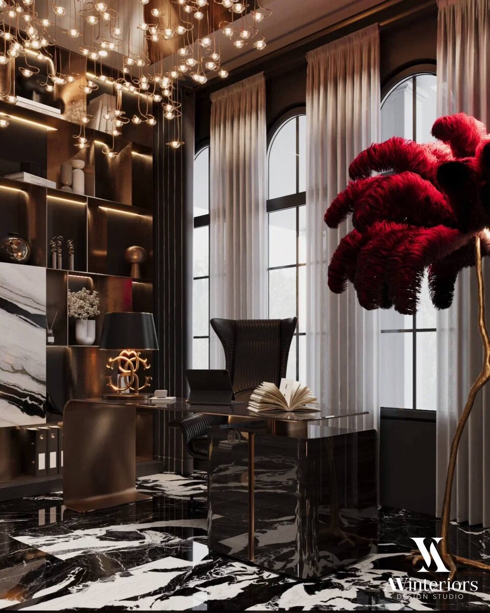 Один кабинет — драматический контраст: тёмное дерево поглощает свет, камень возвращает его в острых бликах. Жёсткая геометрия стола, бархат кресел, глубокие тени — пространство, которое требует и даёт авторитет одновременно. Другой — спокойная сила: мягкие землистые тона, приглушённый свет, текстуры, которые успокаивают разум и открывают фокус. Здесь решения рождаются не в напряжении, а в тишине. AVinteriors не декорирует кабинет. Мы строим его как инструмент: место, где эстетика становится стратегией, а каждый день — осознанным шагом к цели. Здесь статус не демонстрируется — он ощущается в безупречной организации среды для побед. Какой кабинет ближе вашему ритму: драма или тишина? 📩 welcome@av-interiors.ru 📞 +7 (916) 052-07-43