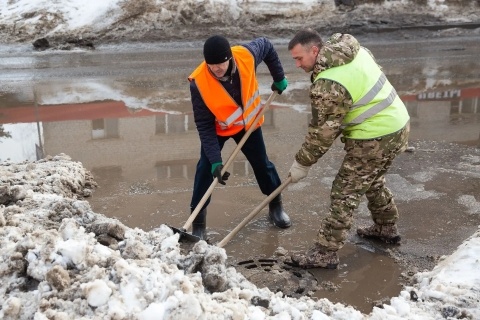 Коммунальные службы занимаются расчисткой ливневых решеток, чтобы талая вода быстрее уходила с дорог и дворов. Как отметил Александр Нагин, в районе всего насчитывается 826 ливневых колодцев.
