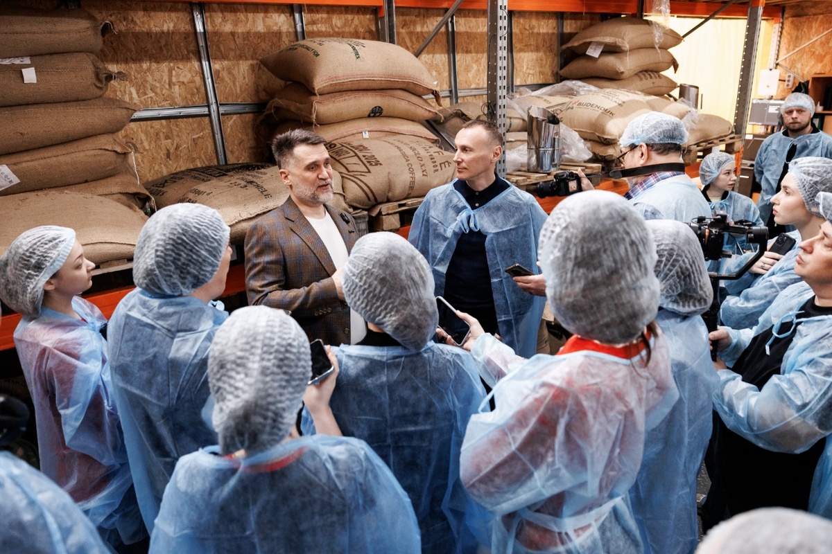 На площадке компании «Чебоко», одного из самых современных кофейных производств на Юге России, журналисты с интересом ознакомились со всеми этапами превращения зерна в любимый напиток.