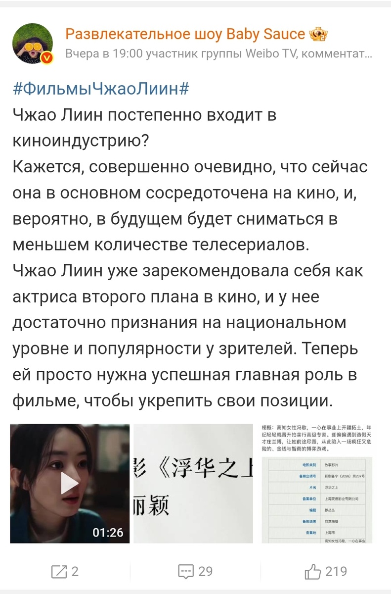 В интернете ходят слухи, что следующий фильм Чжао Лиин будет