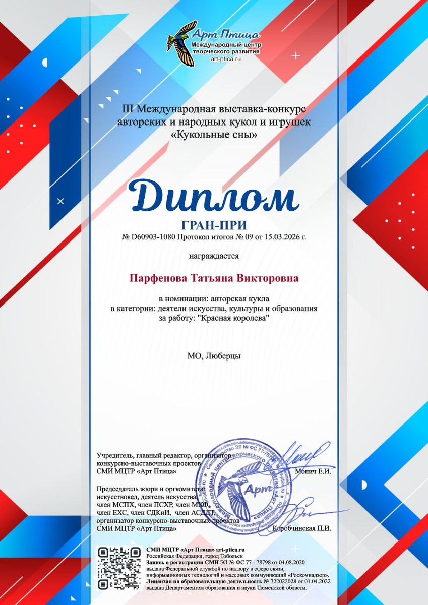 У меня еще один диплом по моей малышке Красная королева. И я спешу поделиться с вами радостью.