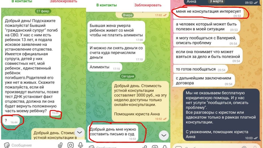 Но очень наглядно отражают то, что происходит практически ежедневно - в личные сообщения пишут абсолютно незнакомые люди, подробно рассказывают свою ситуацию, задают вопросы, а когда им мой помощник сообщает о том, что консультация платная - оказывается, им консультация не нужна 🤷♀️ Особенно возмутила та переписка, где мужчина пишет о том, что "Я могу пообщаться с Валерией, описать проблему, если она понимает, что может взяться за дело и быть полезной, то готов пообщаться". Мои дорогие, я не витаминка, чтобы быть полезной. И тут больше вопрос, готова ли я с вами пообщаться, когда вы, общаясь с моим помощником, ведёте себя подобным образом. К слову: для клиентов я Валерия Валерьевна, а не Валерия. ❕Я не склонна ни к благотворительности, ни к альтруизму, и я не оказываю бесплатную юридическую помощь. ❕Вне рамок оплаченного приема мне неинтересны ни вы, ни ваши проблемы. Жестко? Бывает 🤷♀️ ❕Я специалист с многолетним опытом, и оказываю юридическую помощь исключительно на платной основ
