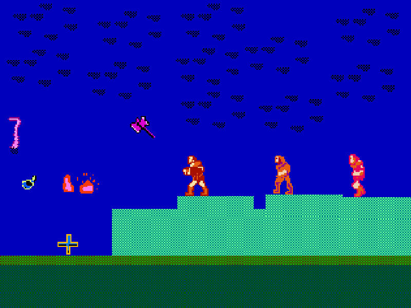 Спрайтовый рисунок на сегодня по мотивам спрайтов из видеоигры Castlevania для игровой приставки Денди. 8 бит. Заветный картридж. И игра про замок с приведениями. И там еще модный охотник на вампиров, летучие мыши и Дракула. Звучит довольно интересно! Для 8 битного школьника которым я был и остаюсь до сих пор. А это мой рисунок по мотивам Castlevania (Денди). Это странное место. Тут висят в воздухе разные предметы. Которые вполне могут тебе пригодиться. В твоих изысканиях этого магического места. Травка растет. Но какая то необычная. И тучи черные. Как будто это стая летучих мышей. Магический огонь висит в воздухе. Кресты. И неплохое цепное оружие. Странный выбор. Обычно все выбирают кинжал или меч. Наверняка эта штуковина тоже полна магии. Ты проник через забор. И оказался в саду. В котором висят предметы. Словно дают шанс искателю приключений. Дают подсказки. Этакий старт. И привлечение внимания. Тебе кажется что эти тучи следят за тобой. Но это всего лишь тучи. И трава такая странн