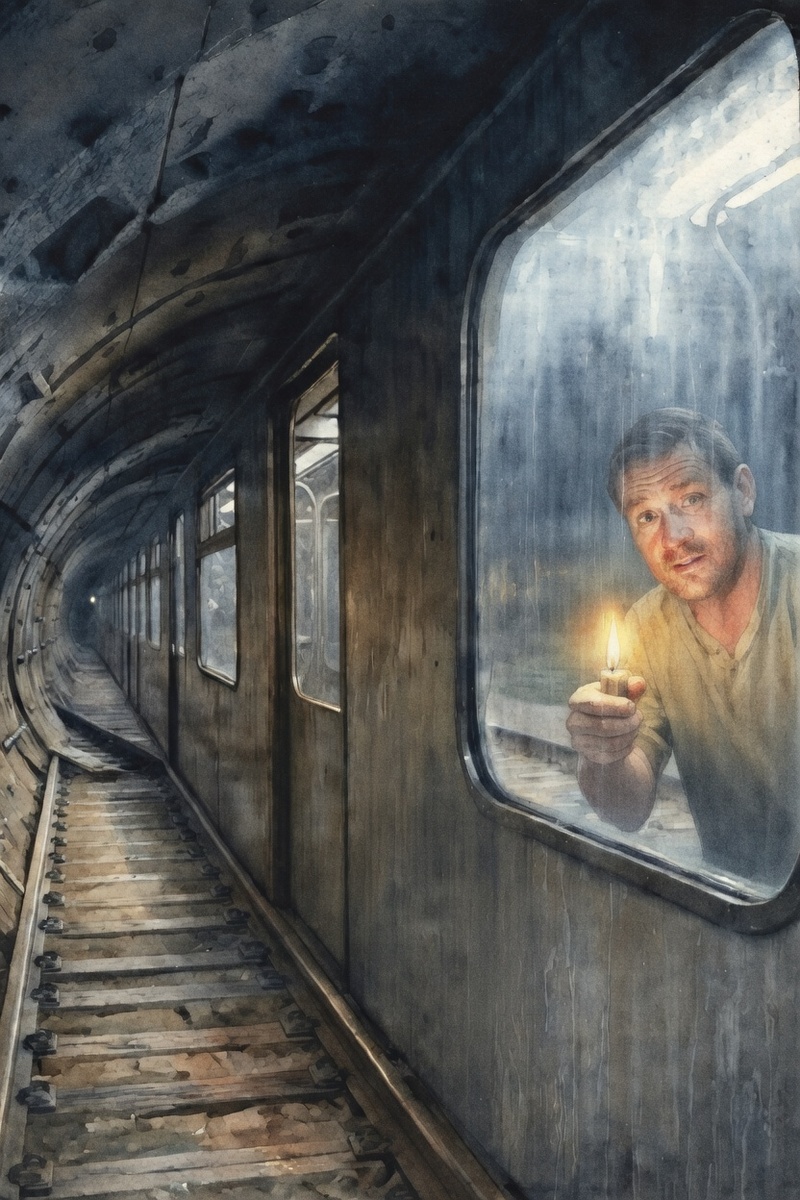 Вагон погрузился в полную темноту, которая подавляла даже самые стойкие оптимистичные мысли. Пассажиры заёрзали, кто-то кряхтел, кто-то нервно кашлянул. Вдруг раздался детский плач — тоненький голосок совсем рядом. Девочка явно испугалась.