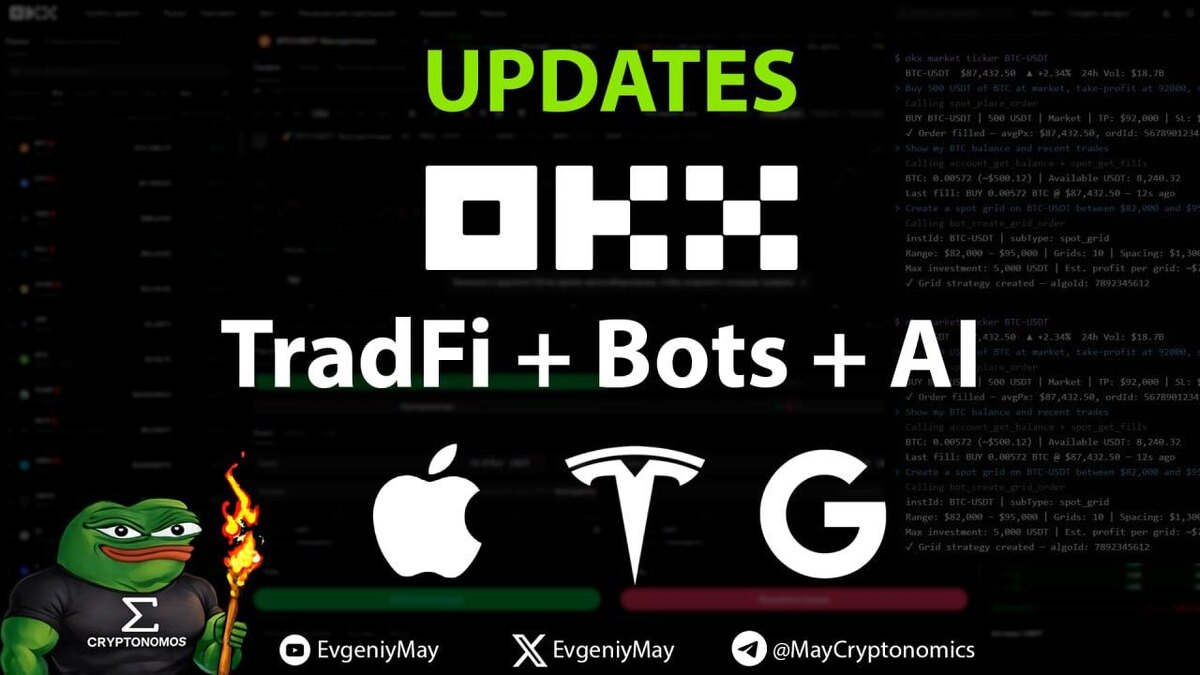 🔥 В среду, 18 марта в 17:00 Мск, встретимся на вебинаре «OKX Updates: TradFi + Bots + AI» 👍 Записаться здесь https://www.cryptonomos.pro/webinar Давно не было вебинаров про биржу OKX, а у них много интересных нововведений, начиная от TradFi до встроенных агентов AI. Разберем: Возможности и потенциал традиционных финансов на OKX Настройки и обновления ботов Пощупаем агентов AI и что с ними можно делать? Взглянем на рынок 💯 Правильное обучение здесь - https://www.cryptonomos.pro/ 👀 Свежие результаты здесь https://t.me/MayCryptonomicsReviews P. S. Зовите друзей - пусть просвещаются 😉 #webinar #Updates #OKX #TradFi #TradingBots #AI