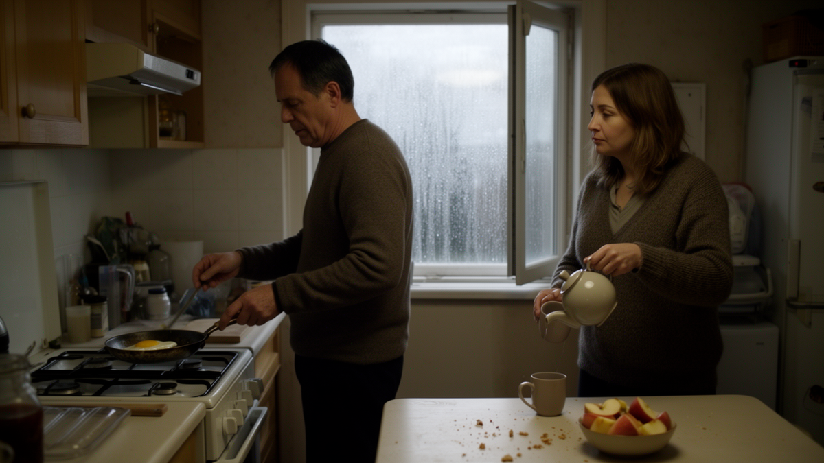 Утром Славик встал раньше всех, нашёл кухню без спроса, включил чайник и, пока вода грелась, открыл окно на проветривание. Нина вышла в халате и сразу увидела, как занавеска прилипает к мокрому от конденсата стеклу.