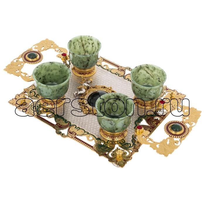 Набор нефритовых пиал «Ангелы» на подносе, 4 персоны ⨳ Материалы: нефрит, латунное литье, ювелирная латунь, никель, золото, фианиты, цветные эмали. ⨳ Габаритные размеры: 30 × 18 × 8 см. Вес: 3.3 кг. ⨳ Изделие укомплектовано: подарочной коробкой из натуральных пород дерева. ⨳ Авторская ручная работа. 🔸 Интернет магазин 📱 Телеграм канал 🔹 Дзен ✔️Поддержите наш канал пригласите своих друзей к нам! ✔️Жми на палец вверх!